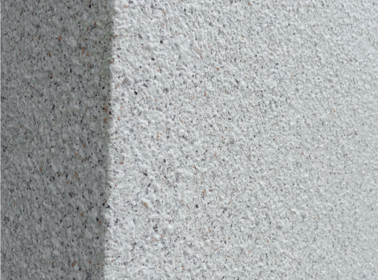 Sơn đá khò lửa có bề mặt hoàn thiện cũng sần nhẹ, nhưng sờ vào có giảm giác hạt đá tròn, không thô ráp, gai tay. Loại sơn này chi phí phải chăng, đồng thời cũng chống thấm – chống bám bụi và rêu mốc cực kỳ tốt thường được dùng thi công ngoại thất các dự án, công trình, nhà ở cao cấp.
